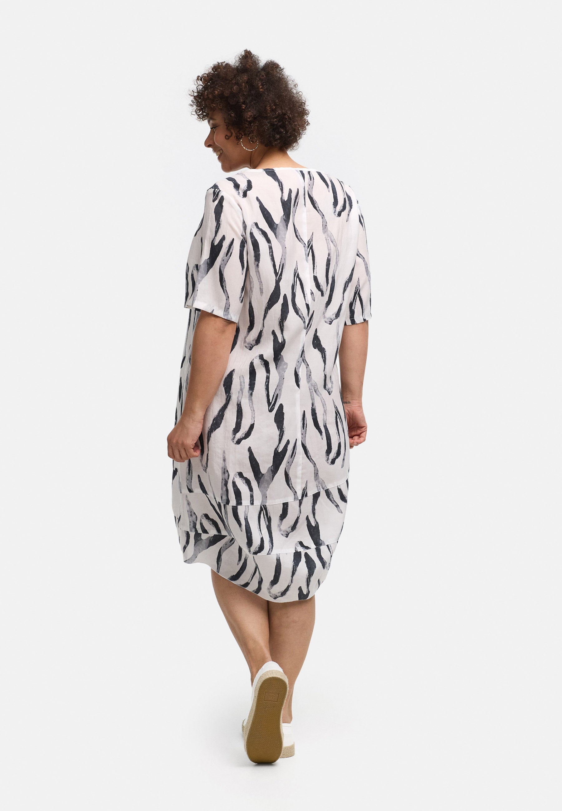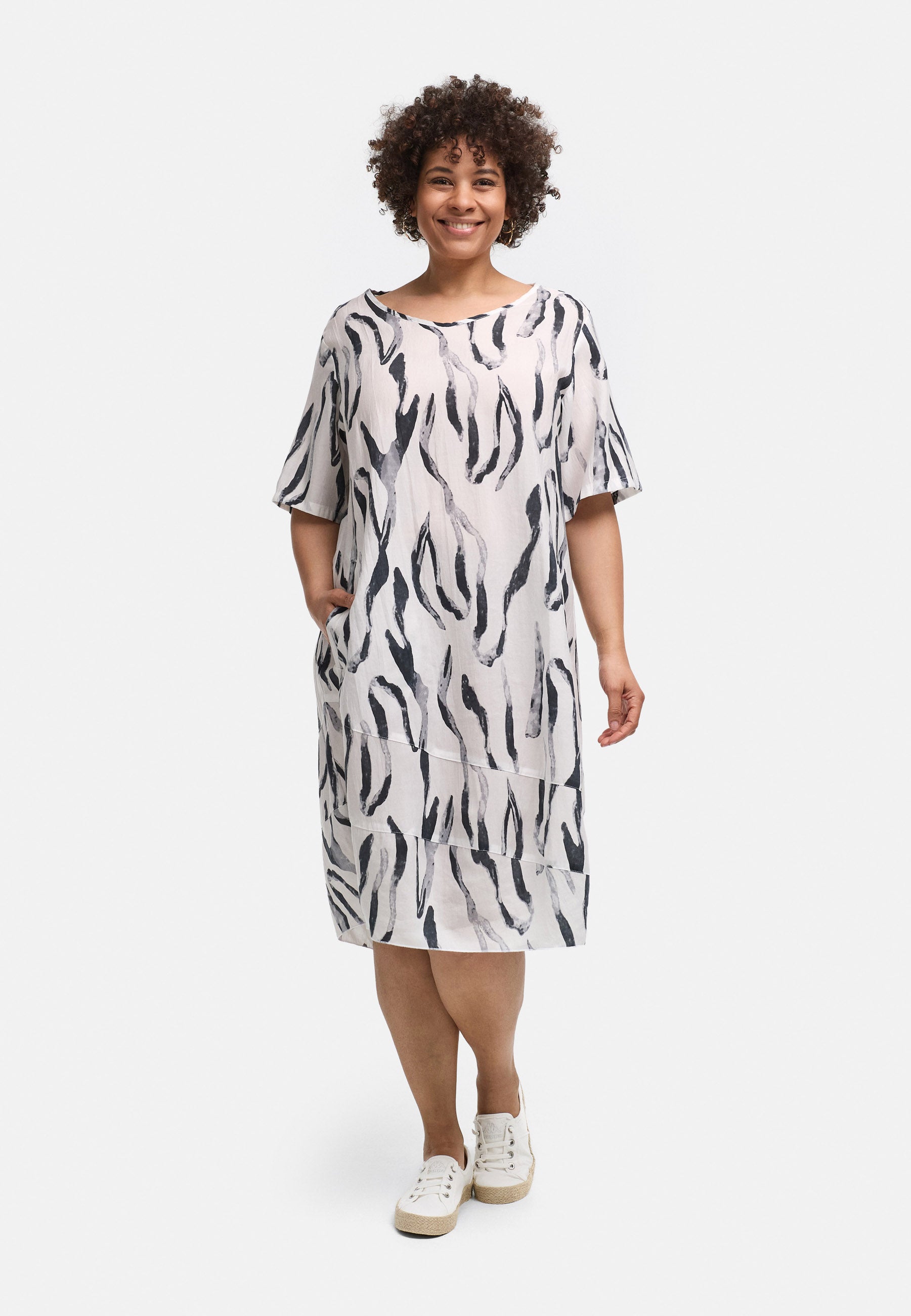Ein Kleid, das Leichtigkeit, Komfort und modernen Print vereint – mit seinem fließenden Materialmix und der lockeren Silhouette ist „Maris“ dein perfekter Begleiter für stilvolle Everyday-Looks.