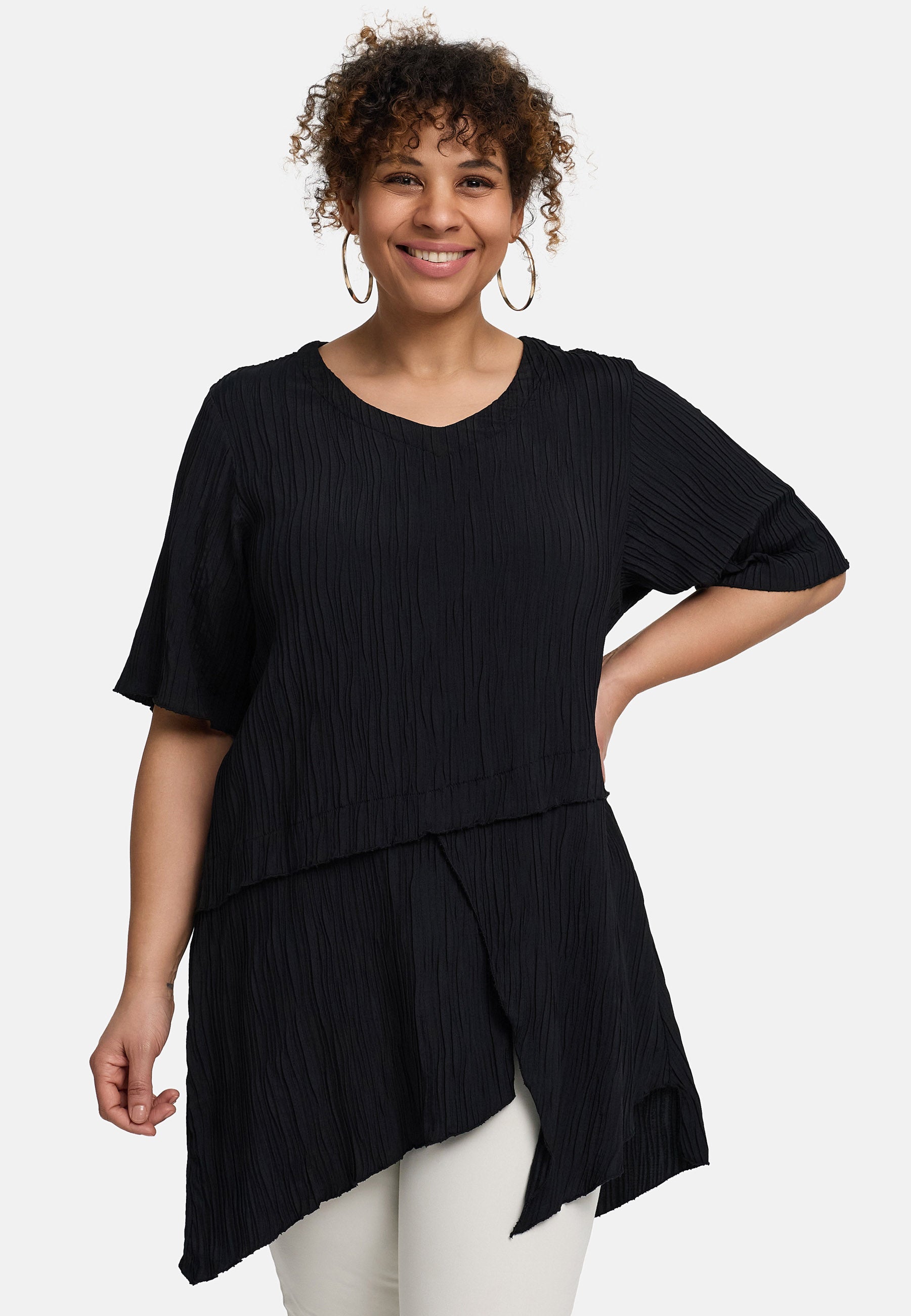 Wenn ein Oberteil auf Anhieb aussieht, als hättest du dir richtig Gedanken gemacht – dann ist es „Crissa“. Die feine Crinkle-Struktur bringt Tiefe in den Look und wirkt gleichzeitig entspannt und alltagstauglich. Durch den zweilagigen Schnitt entsteht ein spannendes Spiel aus Längen: oben clean und locker, darunter ein fließender Layer mit überlappendem Frontteil, das bei jeder Bewegung mitschwingt.