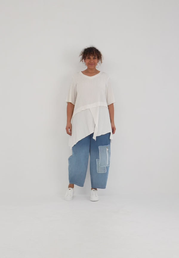 Die „Crissa“ Tunika ist dein Styling-Shortcut: luftig-leicht, zweilagig designt und mit V-Ausschnitt sowie asymmetrischem Saum ein moderner Hingucker – perfekt zu der 'Sky' Jeans Hose oder der 'Niva' Hose.